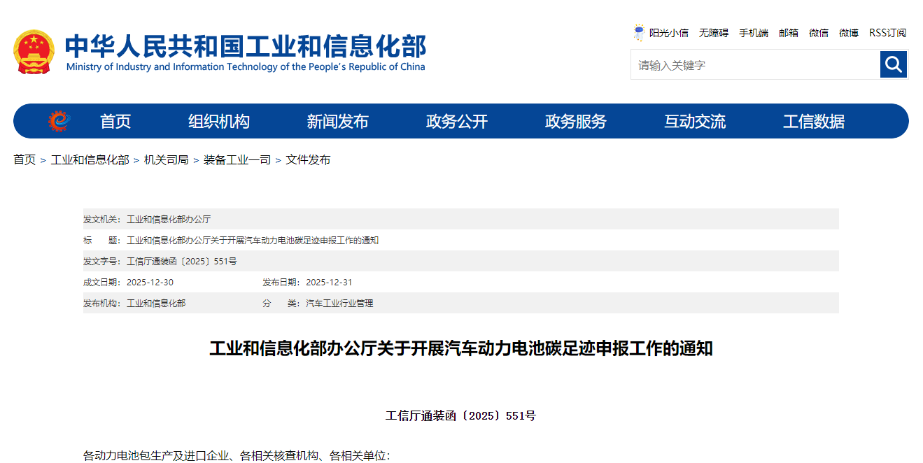 为贯彻落实党中央、国务院关于碳达峰、碳中和重大决策部署,按照《加快构建碳排放双控制度体系工作方案》(国办发〔2024〕39号)等文件要求,加快探索建立符合我国国情的汽车动力电池(以下简称动力电池)碳足迹管理体系,更好支撑产业绿色转型和高质量发展,工业和信息化部决定开展动力电池碳足迹申报工作。有关事项通知如下: