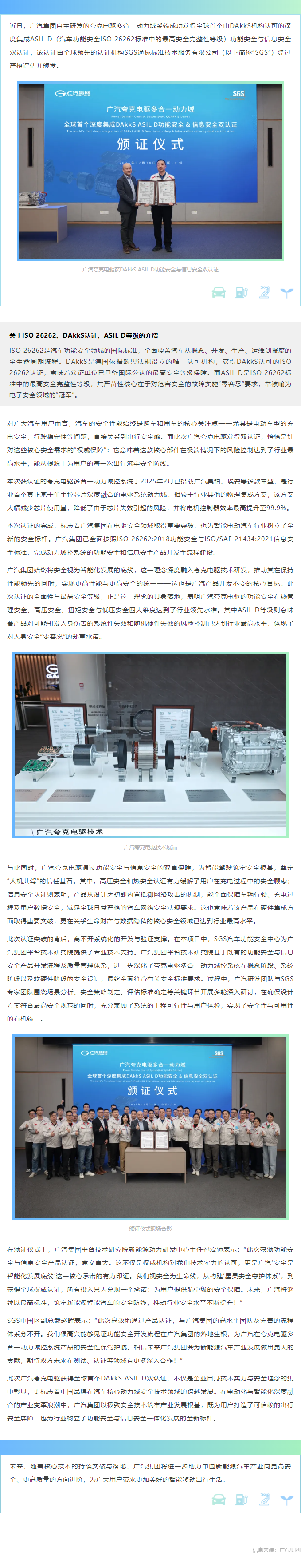全球首个,广汽夸克电驱获DAkkS ASIL D功能安全与信息安全双认证