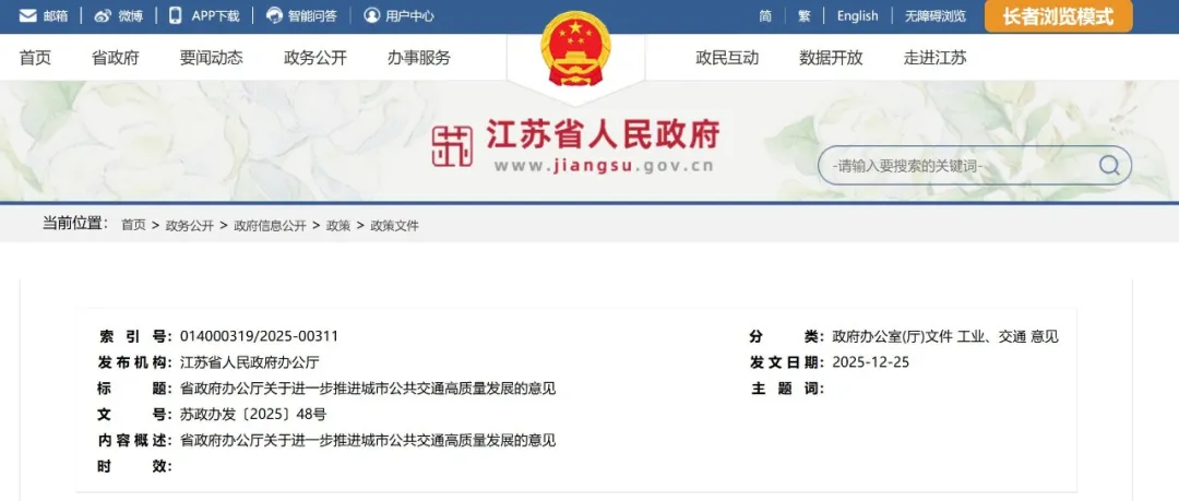 为持续实施城市公共交通优先发展战略,进一步推进城市公共交通高质量发展,经省人民政府同意,江苏省政府办公厅制定《省政府办公厅关于进一步推进城市公共交通高质量发展的意见》(以下简称《意见》》并于近日发布。《意见》明确: