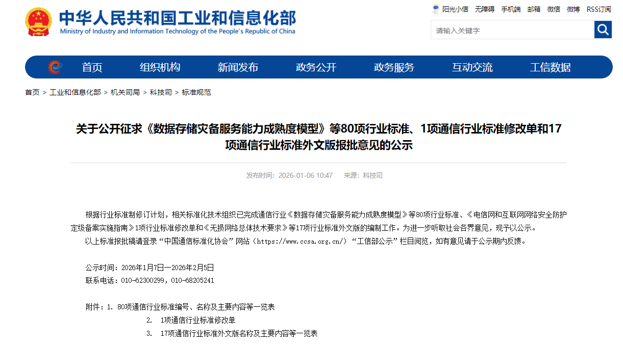 以上标准报批稿请登录“中国通信标准化协会”网站(https://www.ccsa.org.cn/)“工信部公示”栏目阅览,如有意见请于公示期内反馈。