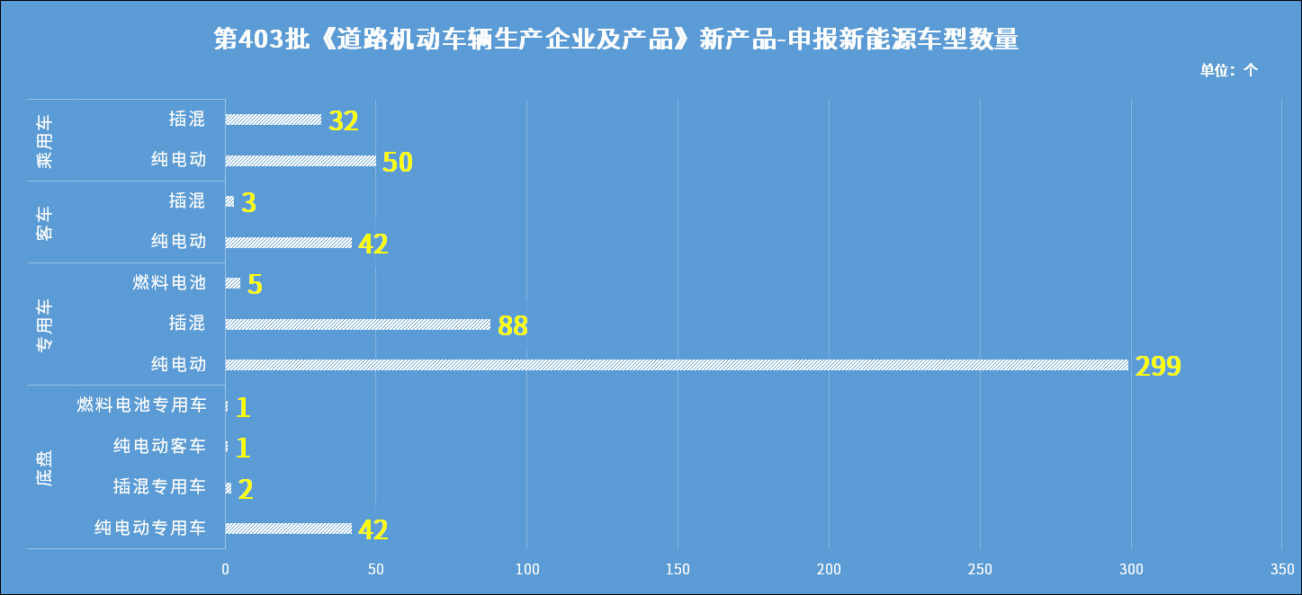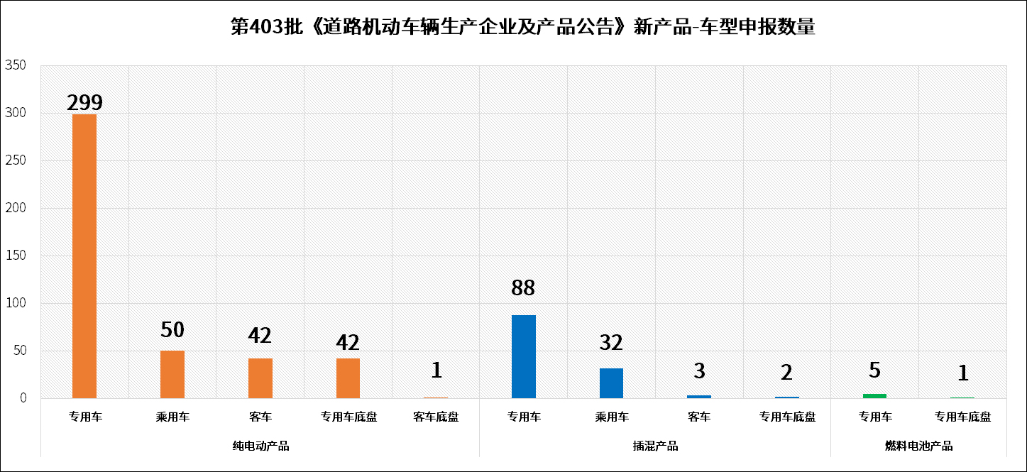 2026年1月9日,工业和信息化部装备工业一司公示申报的第403批《道路机动车辆生产企业及产品公告》新产品。经统计,申报新能源汽车产品的共有191家企业的565个型号,其中纯电动产品共152家企业434个型号、插电式混合动力产品共69家企业125个型号、燃料电池产品共4家企业6个型号。