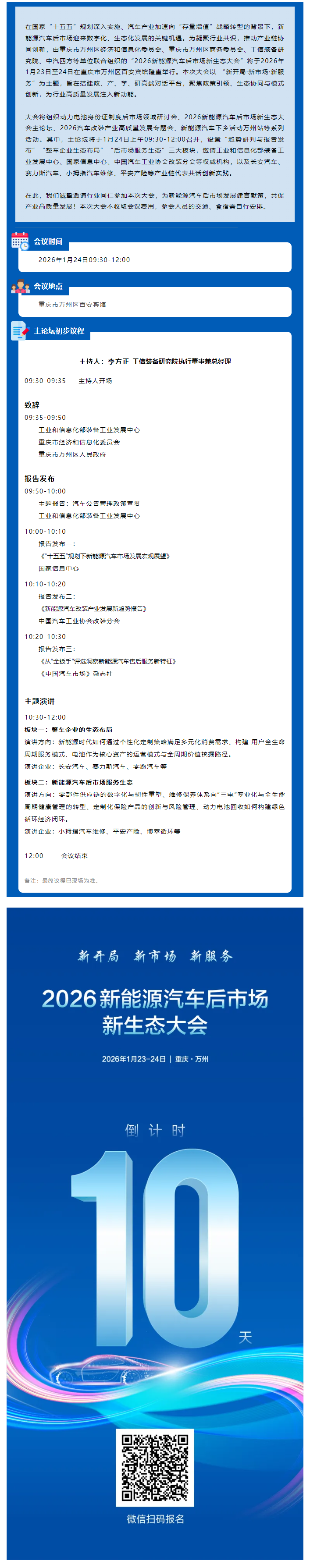 倒计时10天!主论坛初步议程公布!2026新能源汽车后市场新生态大会