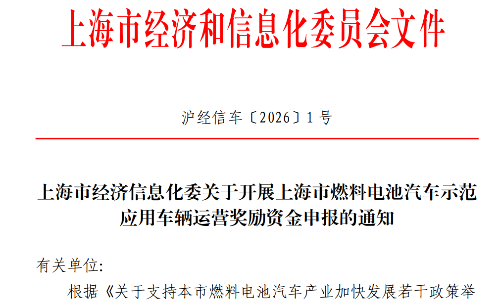 根据《关于支持本市燃料电池汽车产业加快发展若干政策举措》(沪发改规范〔2021〕10号)、《上海市燃料电池汽车示范应用专项资金实施细则》(沪经信规范〔2023〕2号)等文件精神,现就开展上海市燃料电池汽车示范应用车辆运营奖励申报工作有关事项通知如下: