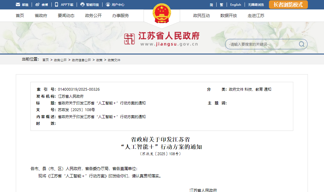 江苏省“人工智能+”行动方案
