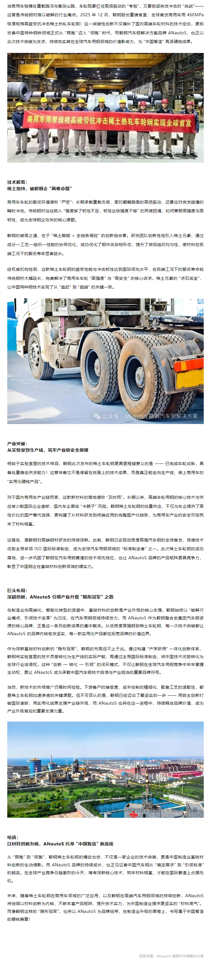 全球首发!鞍钢稀土车轮钢横空出世,中国特种钢实现 “领跑” 跨越