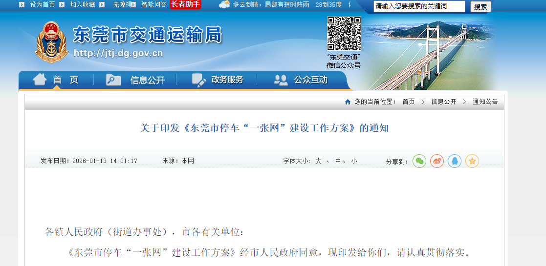 东莞市停车“一张网”建设工作方案