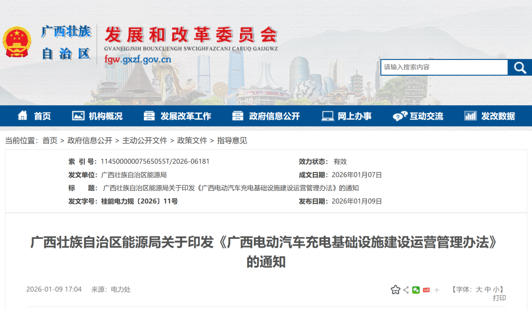 随着发展形势变化,充电基础设施管理工作也面临新情况新要求,需要与时俱进加以完善。为进一步优化充电基础设施发展环境,满足人民群众日益增长的电动汽车充电需求,自治区能源局依据国家政策文件及法律法规等,结合广西实际,形成《广西电动汽车充电基础设施建设运营管理办法》(以下简称《办法》)并于近日印发。