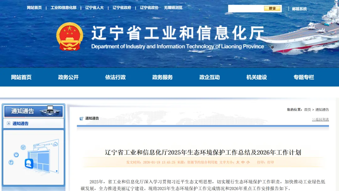 2025年,省工业和信息化厅深入学习贯彻习近平生态文明思想,切实履行生态环境保护工作职责,加快推动工业绿色低碳发展,全力推进美丽辽宁建设。现将2025年生态环境保护工作完成情况和2026年重点工作安排报告如下。