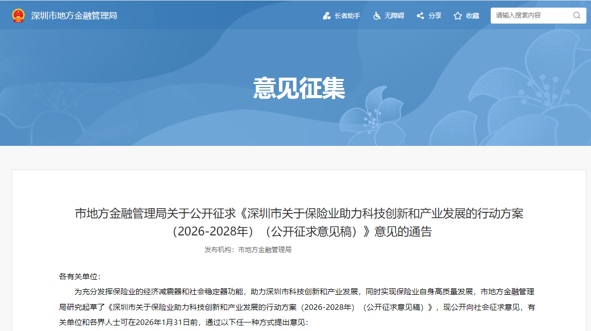 深圳市关于保险业助力科技创新和产业发展的行动方案(2026-2028年)(公开征求意见稿)