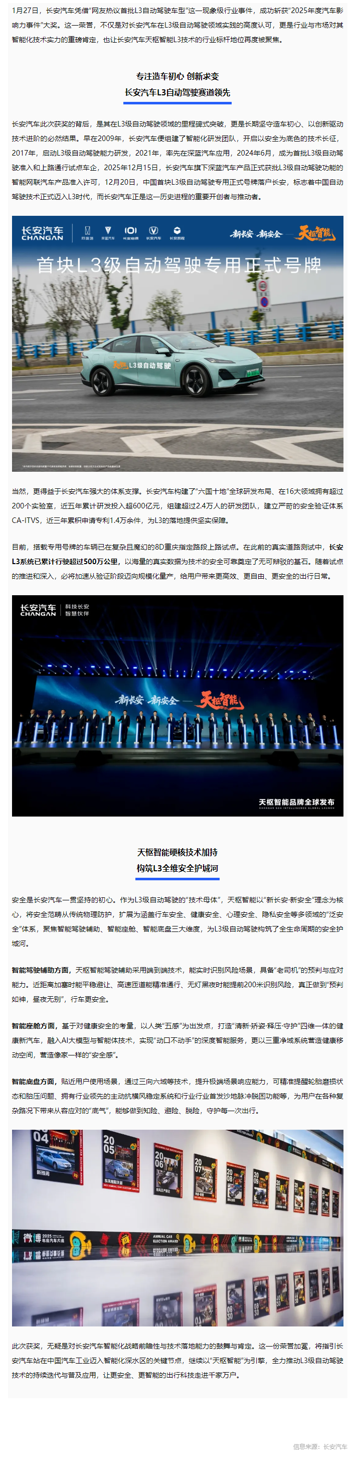 长安汽车天枢智能技术引领行业迈入L3级自动驾驶时代