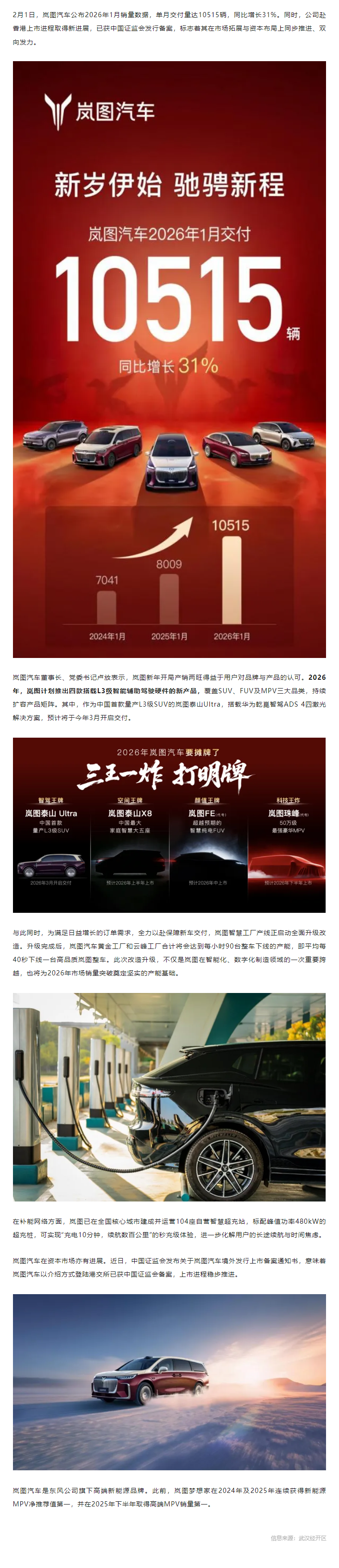 岚图汽车1月交付量破万,年内将推四款智驾新车