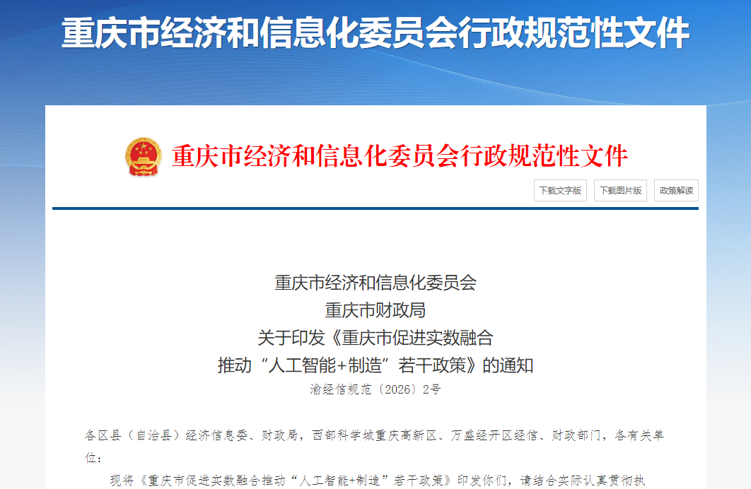 重庆市促进实数融合推动“人工智能+制造”若干政策