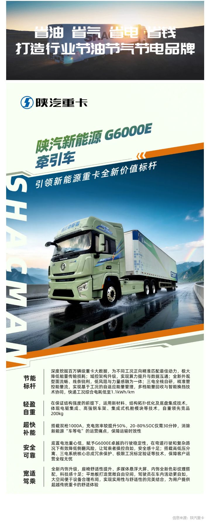 陕汽新能源G6000E牵引车,引领新能源重卡全新价值标杆