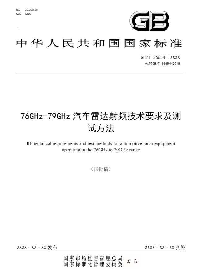 工信部:《76GHz-79GHz汽车雷达射频技术要求及测试方法》推荐性国标报批公示