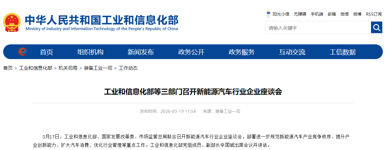 会议要求,要深入贯彻落实习近平总书记关于新能源汽车产业发展的重要指示批示精神,贯彻落实“十五五”规划纲要和《2026年政府工作报告》部署要求,加强部门协同、强化创新驱动,持续推动产业高质量发展。