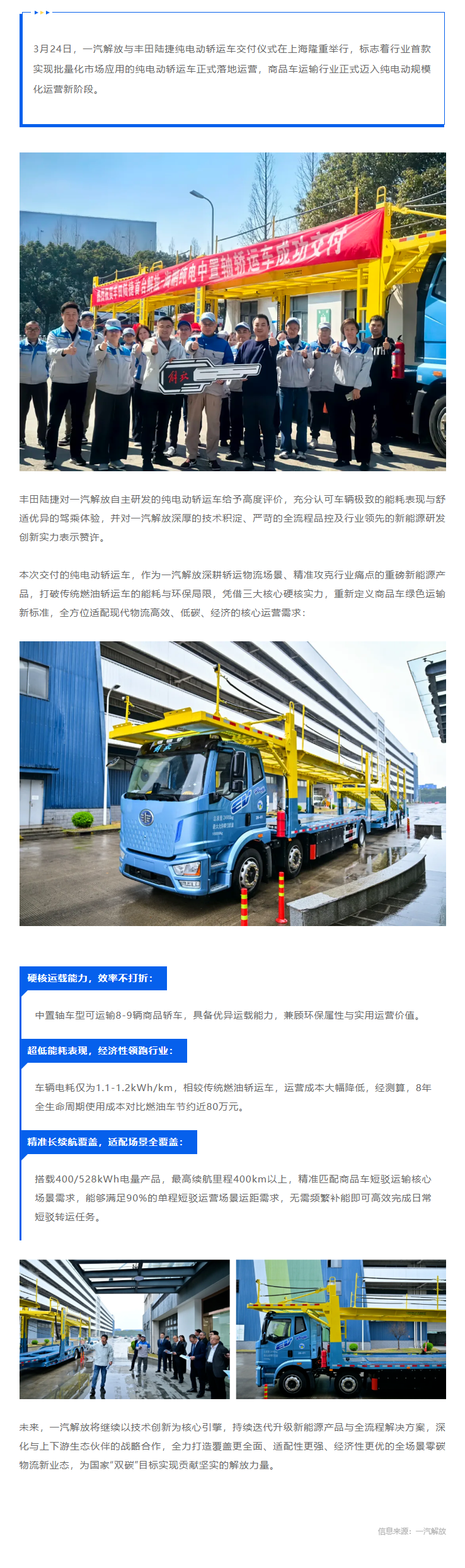 突破!创新!一汽解放行业首款纯电动轿运车批量交付