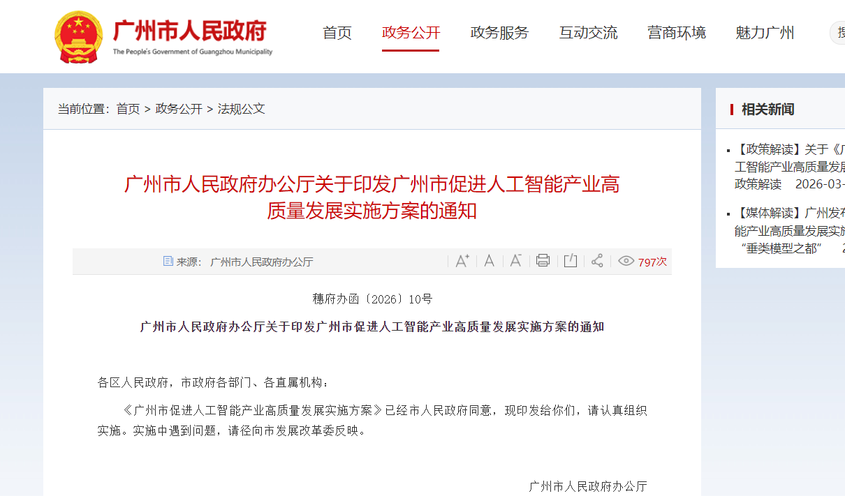 为深入贯彻落实国家关于加快发展人工智能+的决策部署,积极培育提升广州人工智能产业发展水平,加速实现人工智能赋能千行百业,广州市人民政府办公厅制定《广州市促进人工智能产业高质量发展实施方案》(以下简称《方案》)并于近日印发。