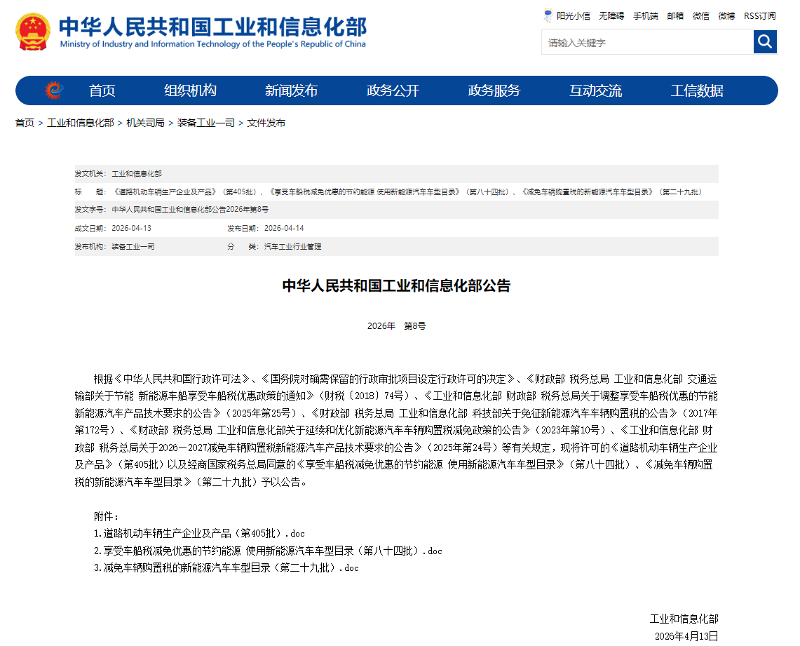 20260414-第405批道路机动车辆生产企业及产品(新能源汽车)