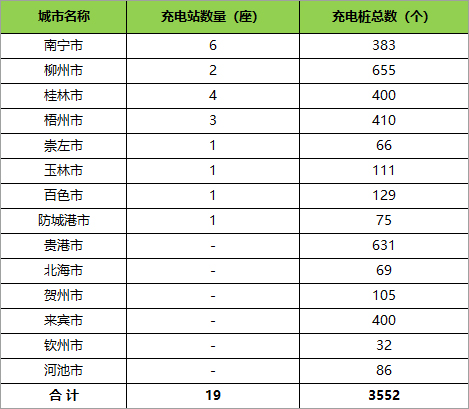 3、桂林市充电站点19个、充电桩400个;