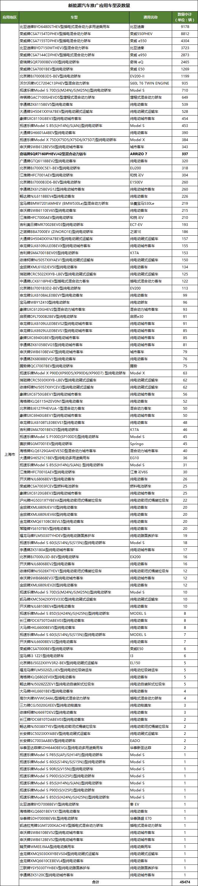 2016年上海市节能与新能源汽车推广应用车型及数量如下所示: