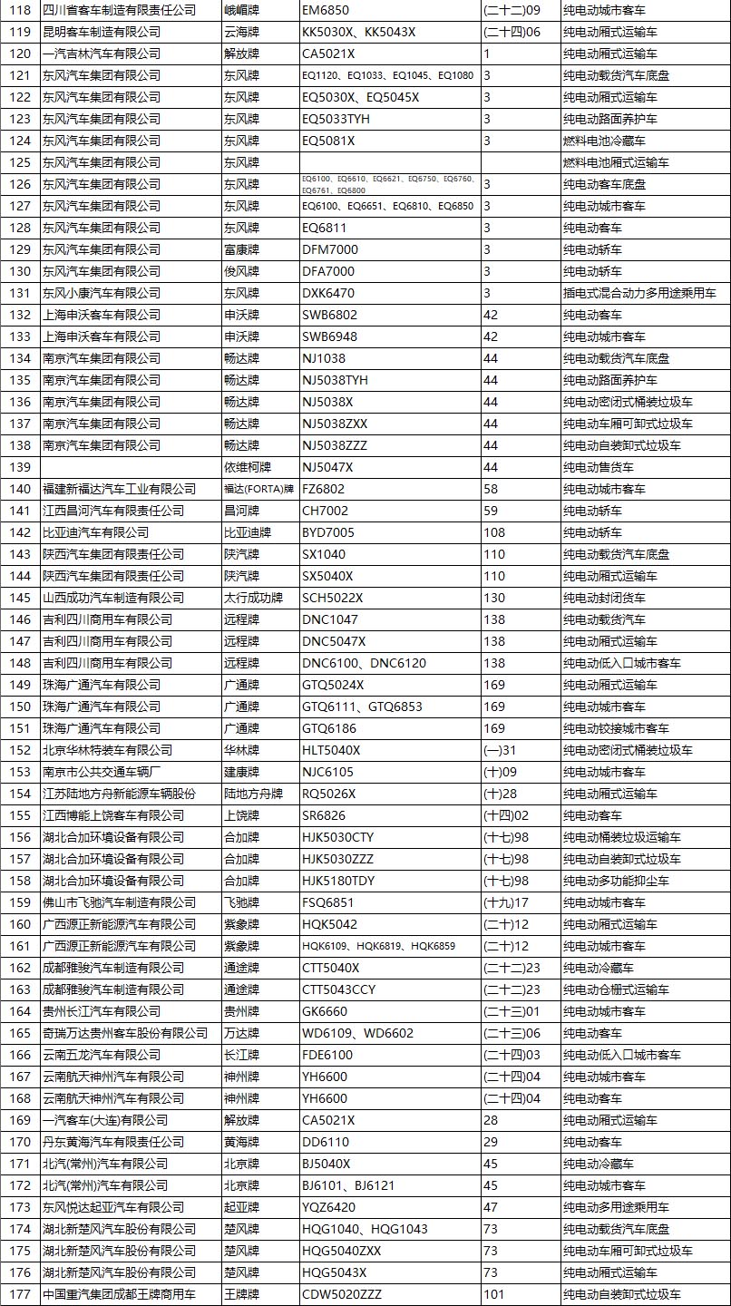 2、燃料种类:纯电动产品共计223款(含80款底盘产品);插电式混合动力产品8款;燃料电池产品共计6款。