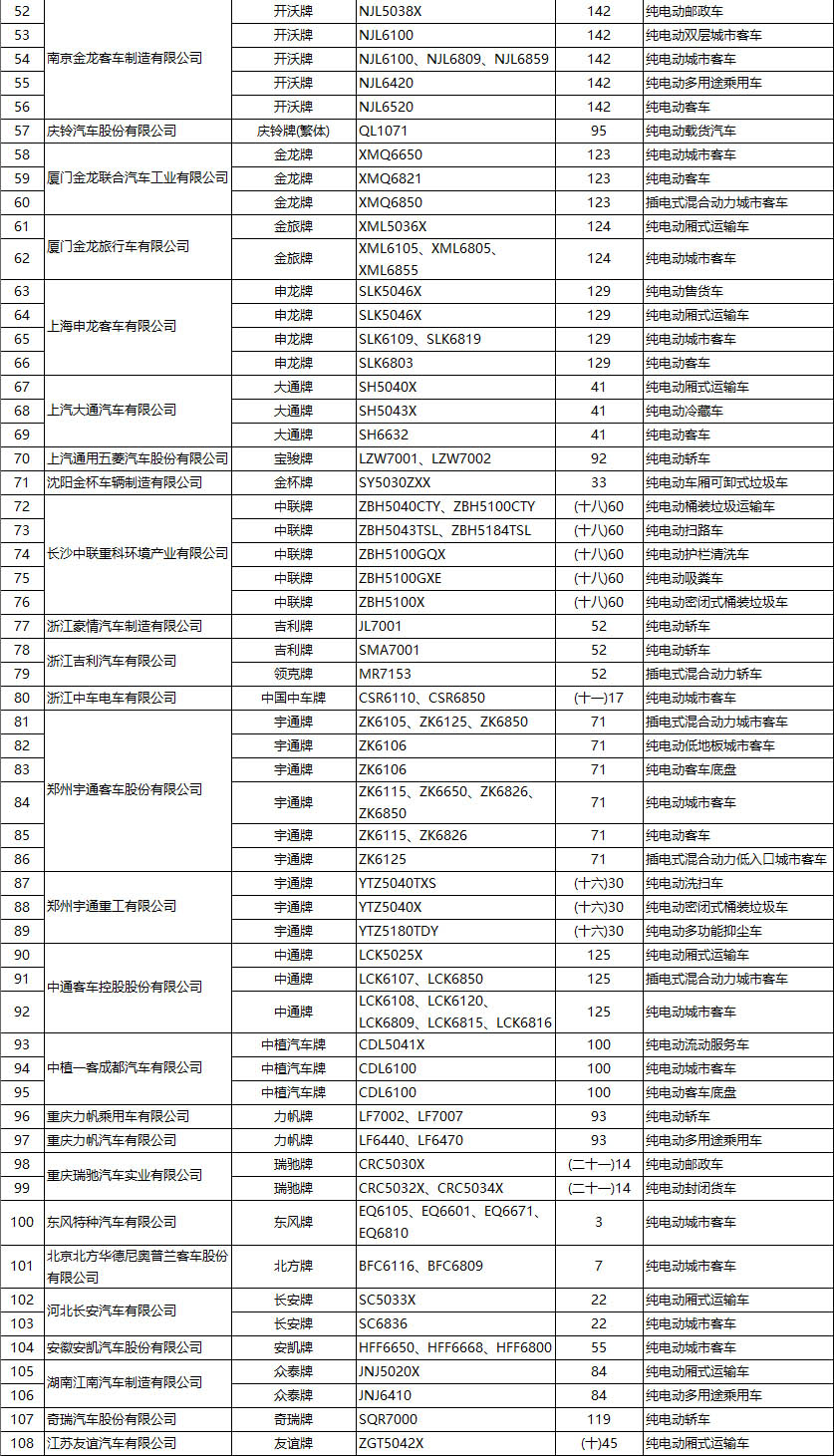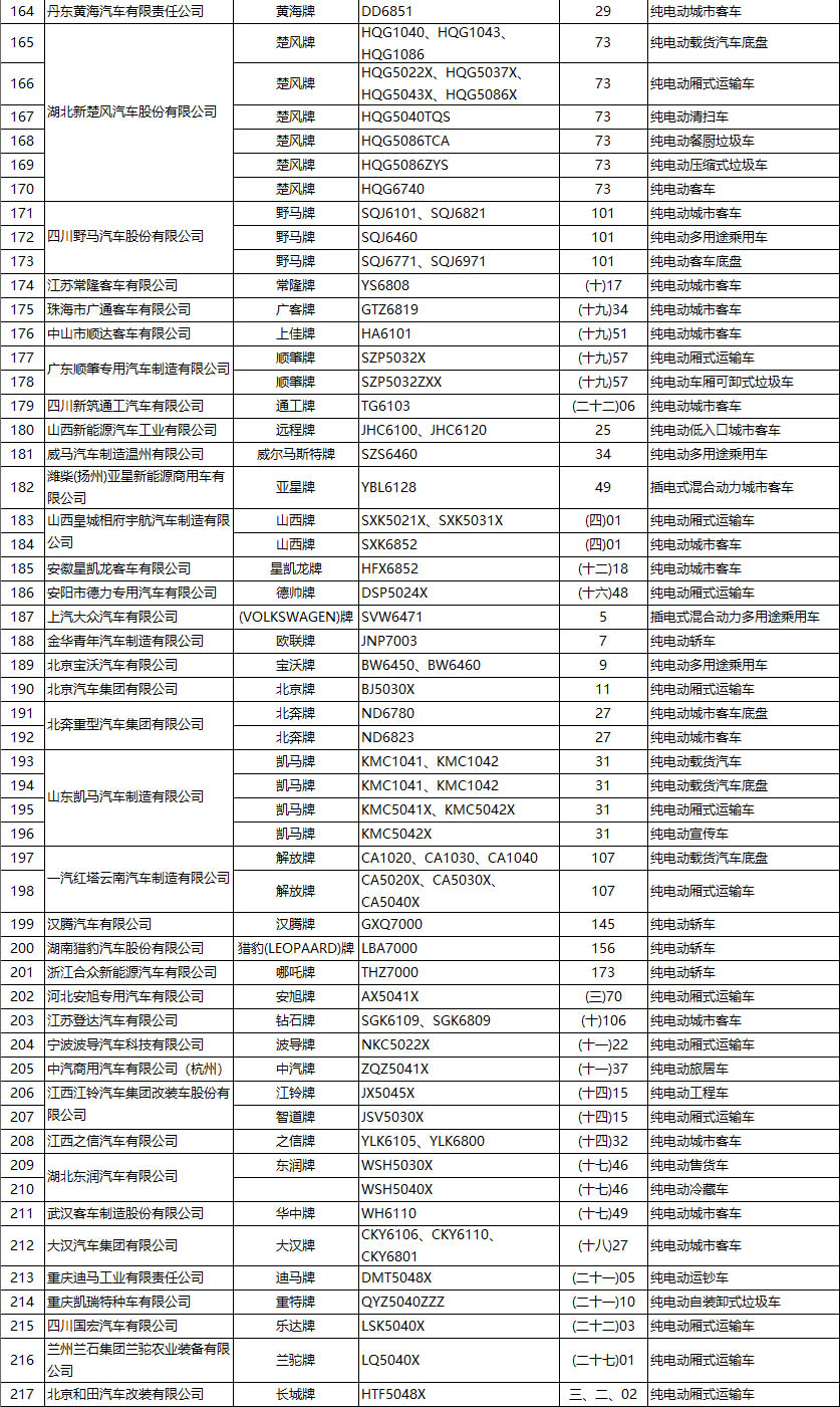 2、燃料种类:纯电动产品共计205款(含21款底盘产品);插电式混合动力产品9款;燃料电池产品共计3款(含1款底盘产品)。