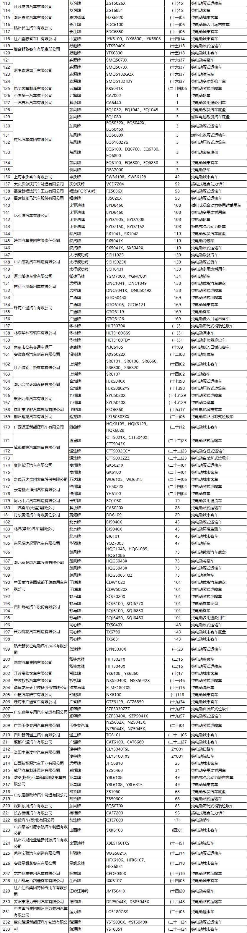 2、燃料种类:纯电动产品共计213款(含25款底盘产品);插电式混合动力产品13款(含1款底盘产品);燃料电池产品共计7款(含1款底盘产品)。