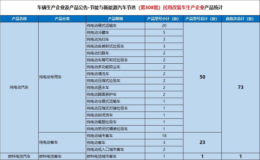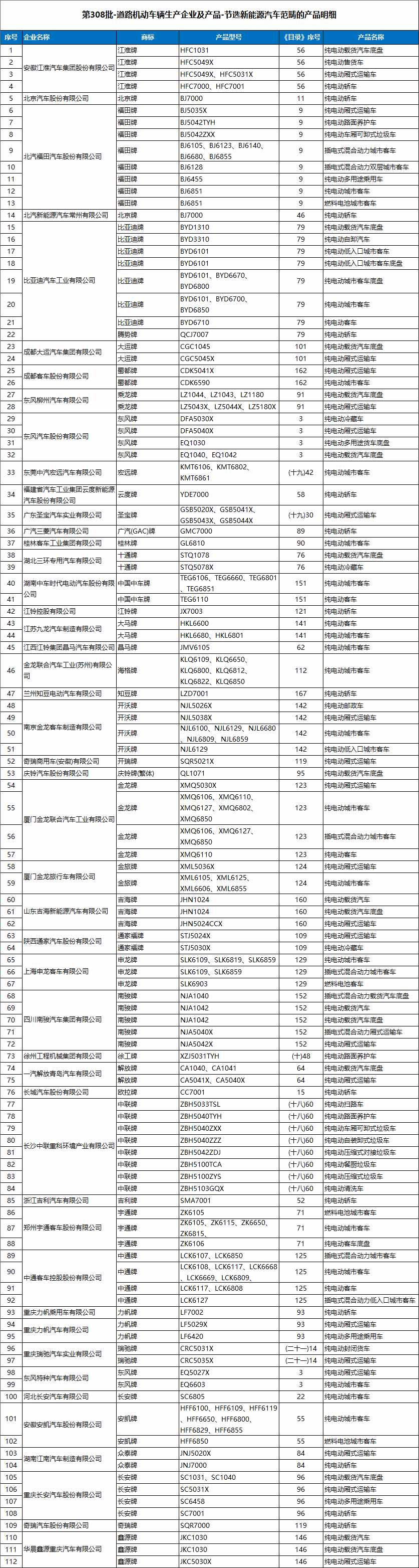 第308批-道路机动车辆生产企业及产品-节选新能源汽车范畴的产品,明细如下所示。