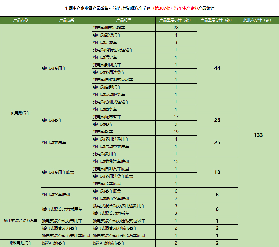 第307批-道路机动车辆生产企业及产品-节选新能源汽车范畴的产品详见链接文件。