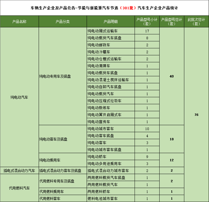 工业和信息化部于2017年10月31日发布《道路机动车辆生产企业及产品(第301批),节能与新能源汽车年鉴编制办公室统计如下: