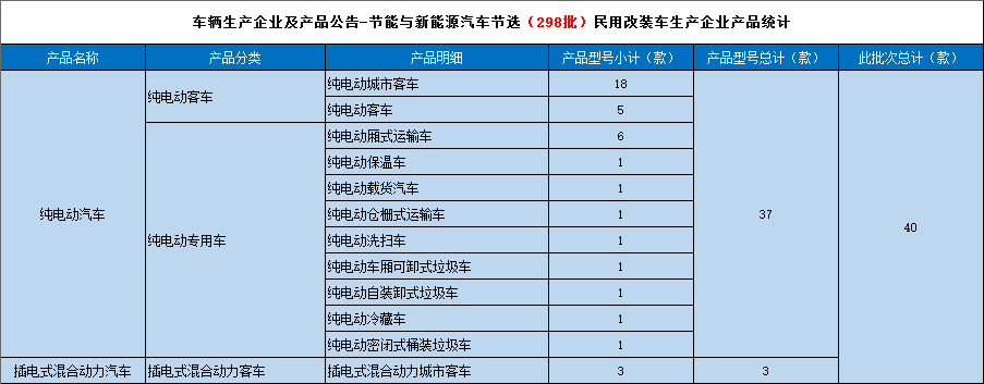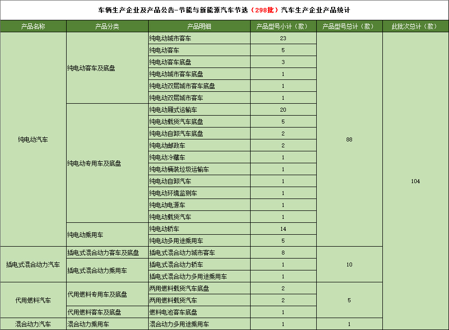 工业和信息化部于2017年7月28日发布《道路机动车辆生产企业及产品(第298批),节能与新能源汽车年鉴编制办公室统计如下: