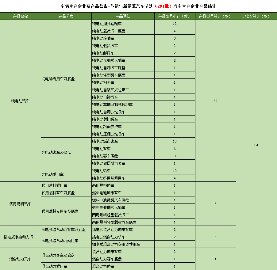 工业和信息化部于2016年12月18日发布《道路机动车辆生产企业及产品(第291批),节能与新能源汽车年鉴编制办公室统计如下: