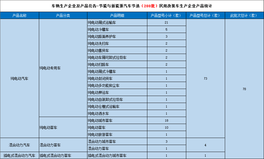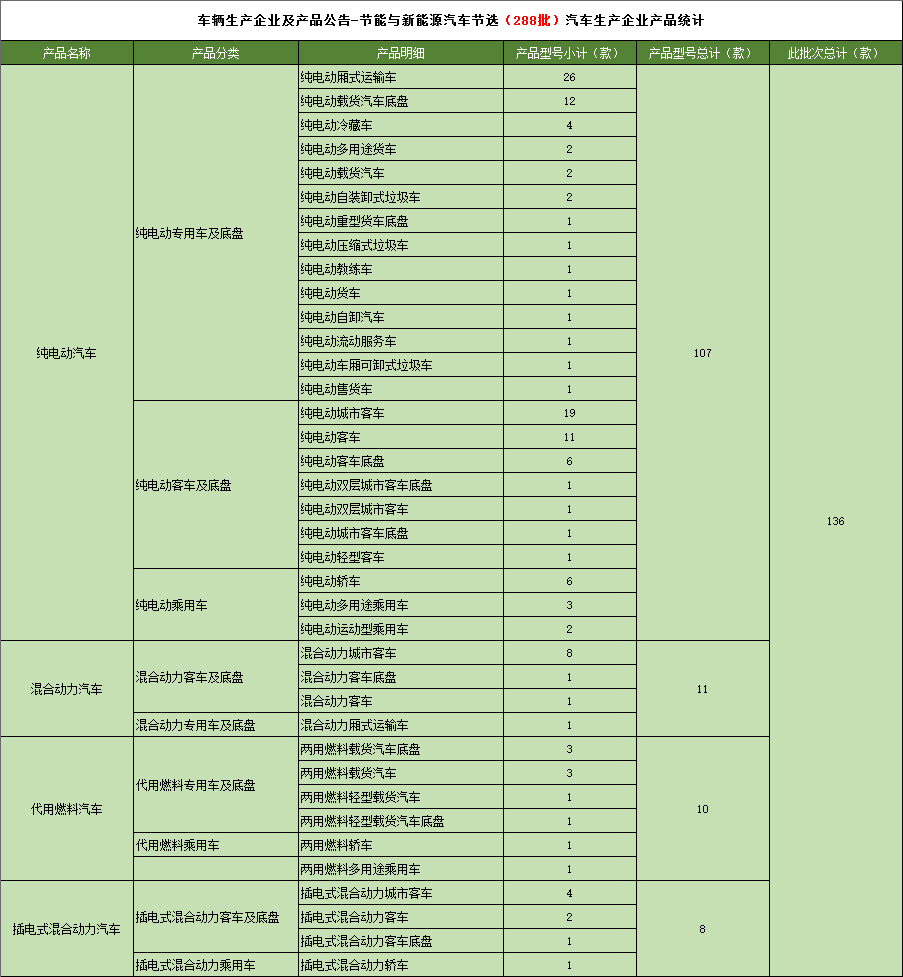 工业和信息化部于2016年9月30日发布《道路机动车辆生产企业及产品(第288批),节能与新能源汽车年鉴编制办公室统计如下: