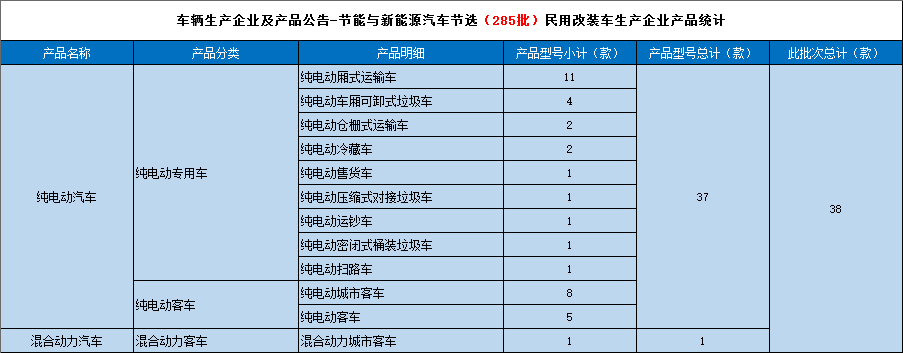 工业和信息化部于2016年7月7日发布《道路机动车辆生产企业及产品(第285批),节能与新能源汽车年鉴编制办公室统计如下: