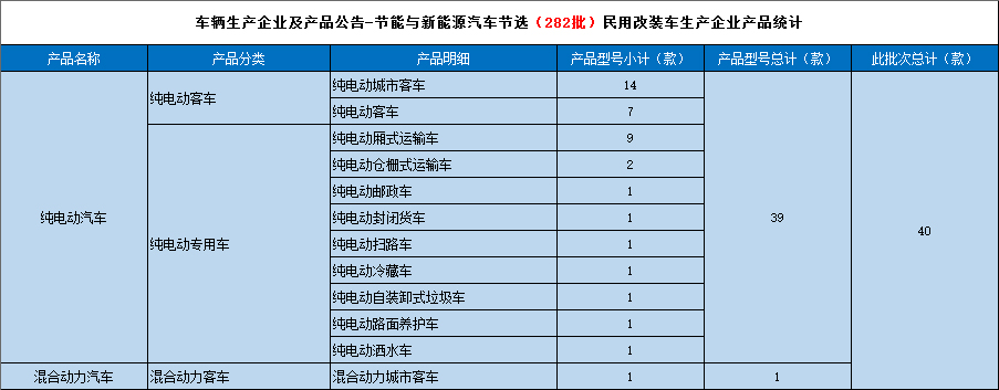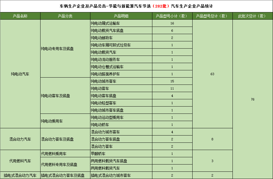 工业和信息化部于2016年4月1日发布《道路机动车辆生产企业及产品(第282批),节能与新能源汽车年鉴编制办公室统计如下: