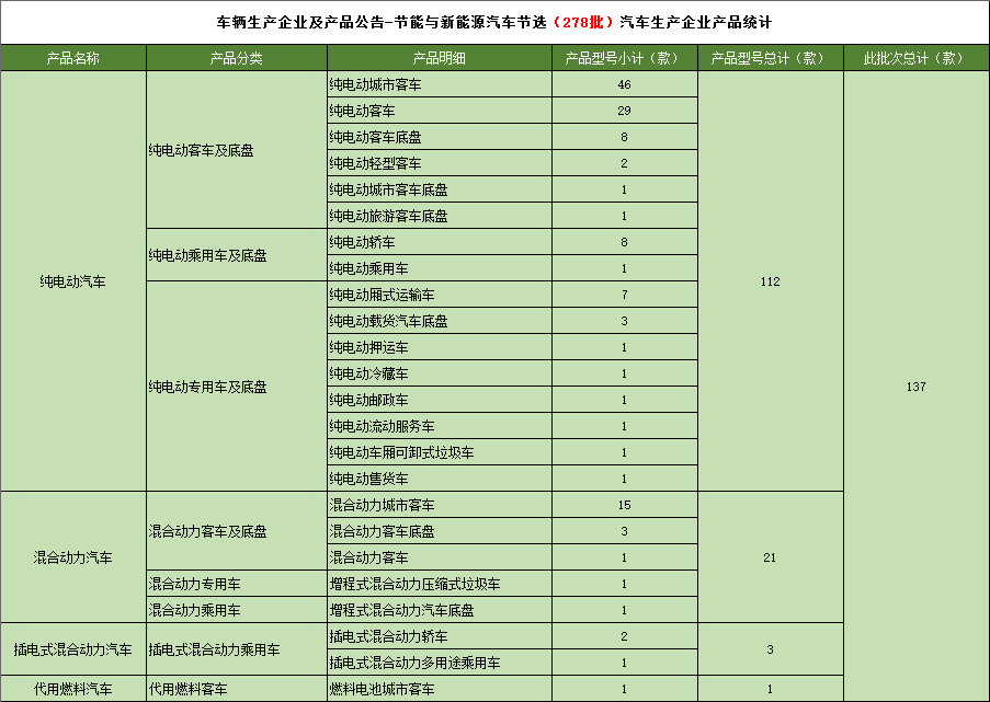 工业和信息化部于2015年11月6日发布《道路机动车辆生产企业及产品(第278批),节能与新能源汽车年鉴编制办公室统计如下: