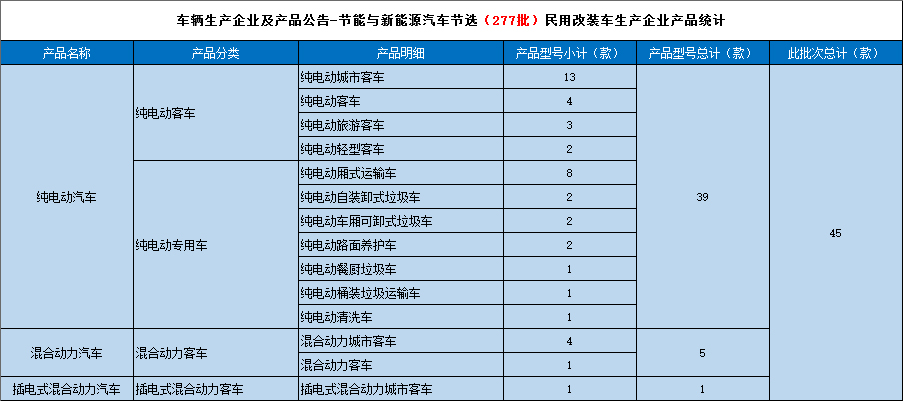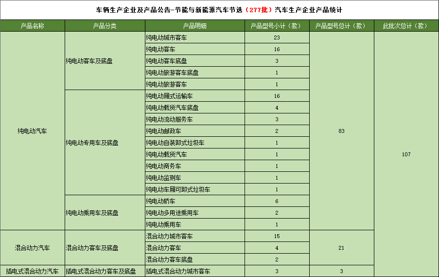 工业和信息化部于2015年10月14日发布《道路机动车辆生产企业及产品(第277批),节能与新能源汽车年鉴编制办公室统计如下:
