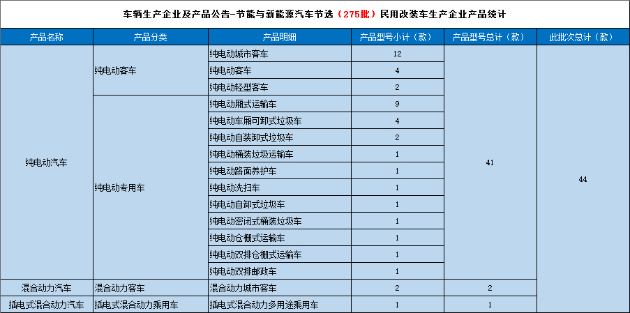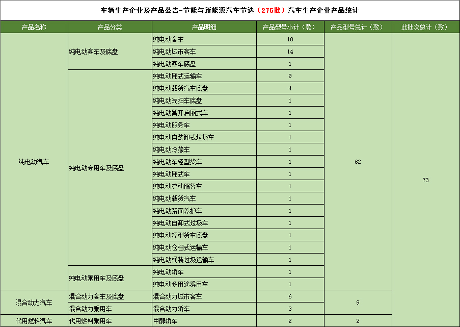 工业和信息化部于2015年8月12日发布《道路机动车辆生产企业及产品(第275批),节能与新能源汽车年鉴编制办公室统计如下:
