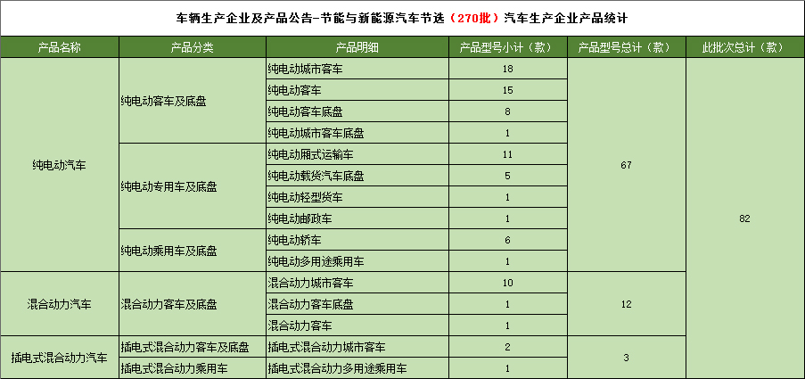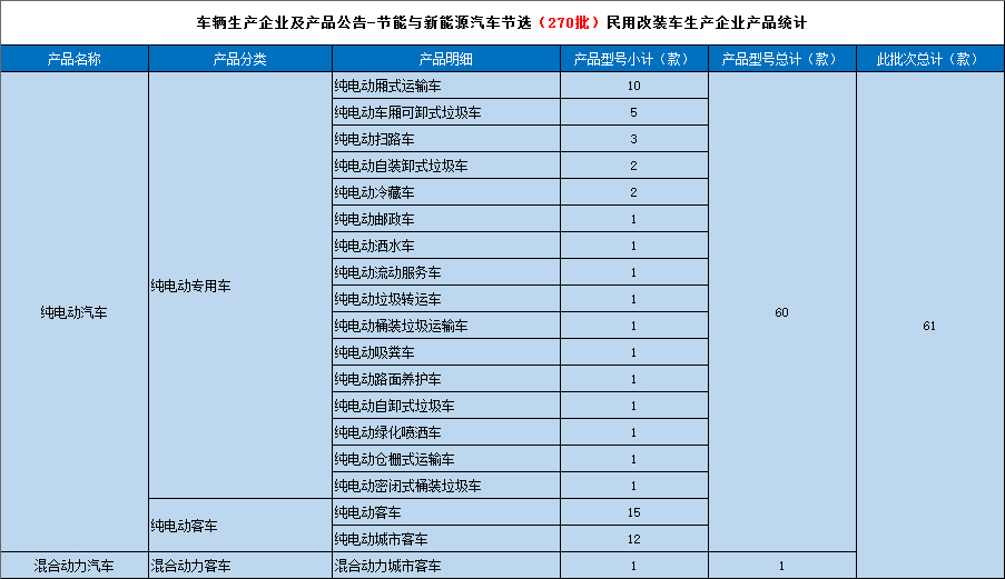工业和信息化部于2015年3月4日发布《道路机动车辆生产企业及产品(第270批),节能与新能源汽车年鉴编制办公室统计如下:
