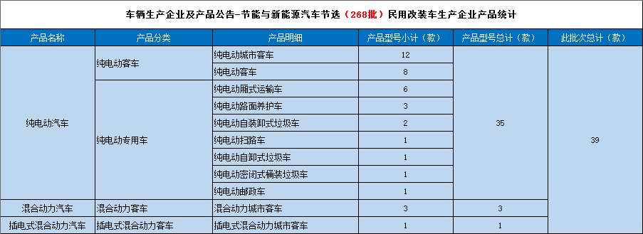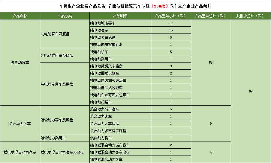 工业和信息化部于2015年1月16日发布《道路机动车辆生产企业及产品(第268批),节能与新能源汽车年鉴编制办公室统计如下:
