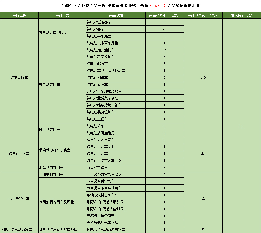 工业和信息化部于2014年12月23日发布《道路机动车辆生产企业及产品(第267批),节能与新能源汽车年鉴编制办公室统计如下:
