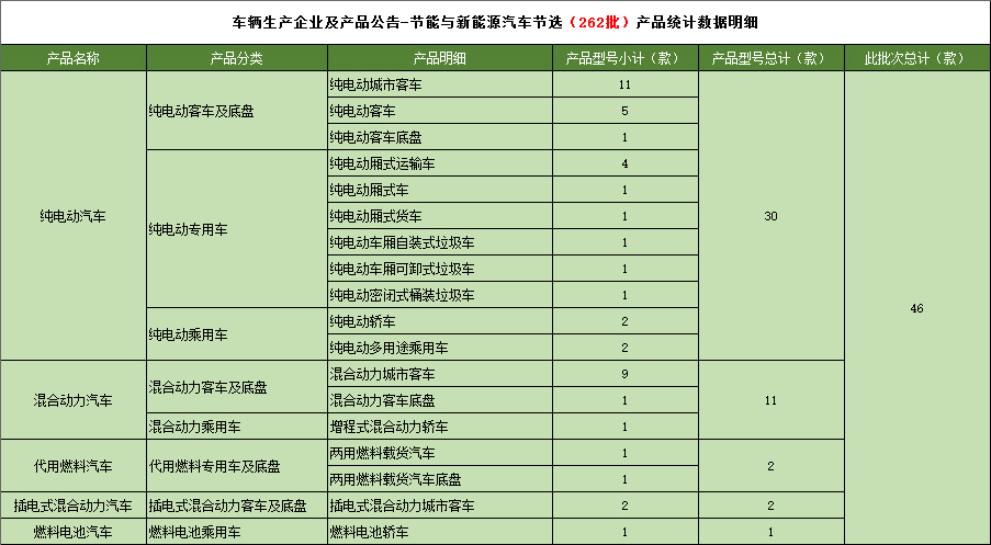 工业和信息化部于2014年7月21日发布《道路机动车辆生产企业及产品(第262批),节能与新能源汽车年鉴编制办公室统计如下: