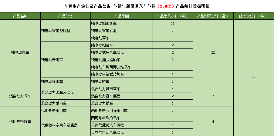 工业和信息化部于2014年3月31日发布《道路机动车辆生产企业及产品(第258批),节能与新能源汽车年鉴编制办公室统计如下: