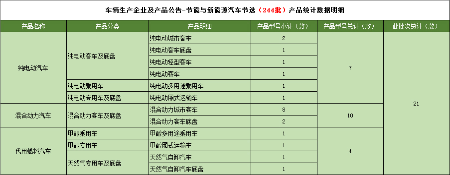 工业和信息化部于2013年1月18日发布《道路机动车辆生产企业及产品(第244批),节能与新能源汽车年鉴编制办公室统计如下: