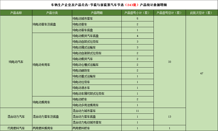 工业和信息化部于2012年12月18日发布《道路机动车辆生产企业及产品(第243批),节能与新能源汽车年鉴编制办公室统计如下: