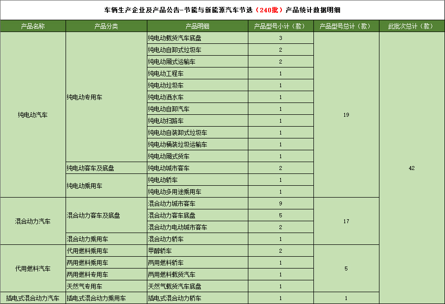 工业和信息化部于2012年9月19日发布《道路机动车辆生产企业及产品(第240批),节能与新能源汽车年鉴编制办公室统计如下: