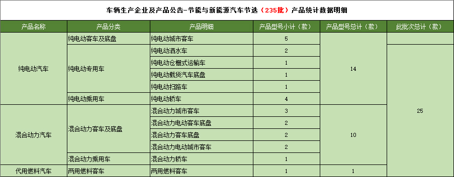 工业和信息化部于2012年3月23日发布《道路机动车辆生产企业及产品(第235批),节能与新能源汽车年鉴编制办公室统计如下: