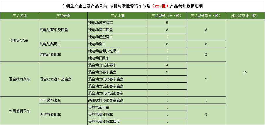 工业和信息化部于2011年9月19日发布《道路机动车辆生产企业及产品(第229批),节能与新能源汽车年鉴编制办公室统计如下: