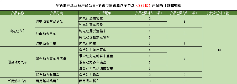 工业和信息化部于2011年4月6日发布《道路机动车辆生产企业及产品(第224批)》,节能与新能源汽车年鉴编制办公室统计如下: