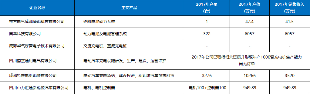 1)成都客车股份有限公司:2017年共计生产节能与新能源客车1178辆,实现产值3.74亿元。其中生产新能源客车330辆,实现产值1.8002亿元.